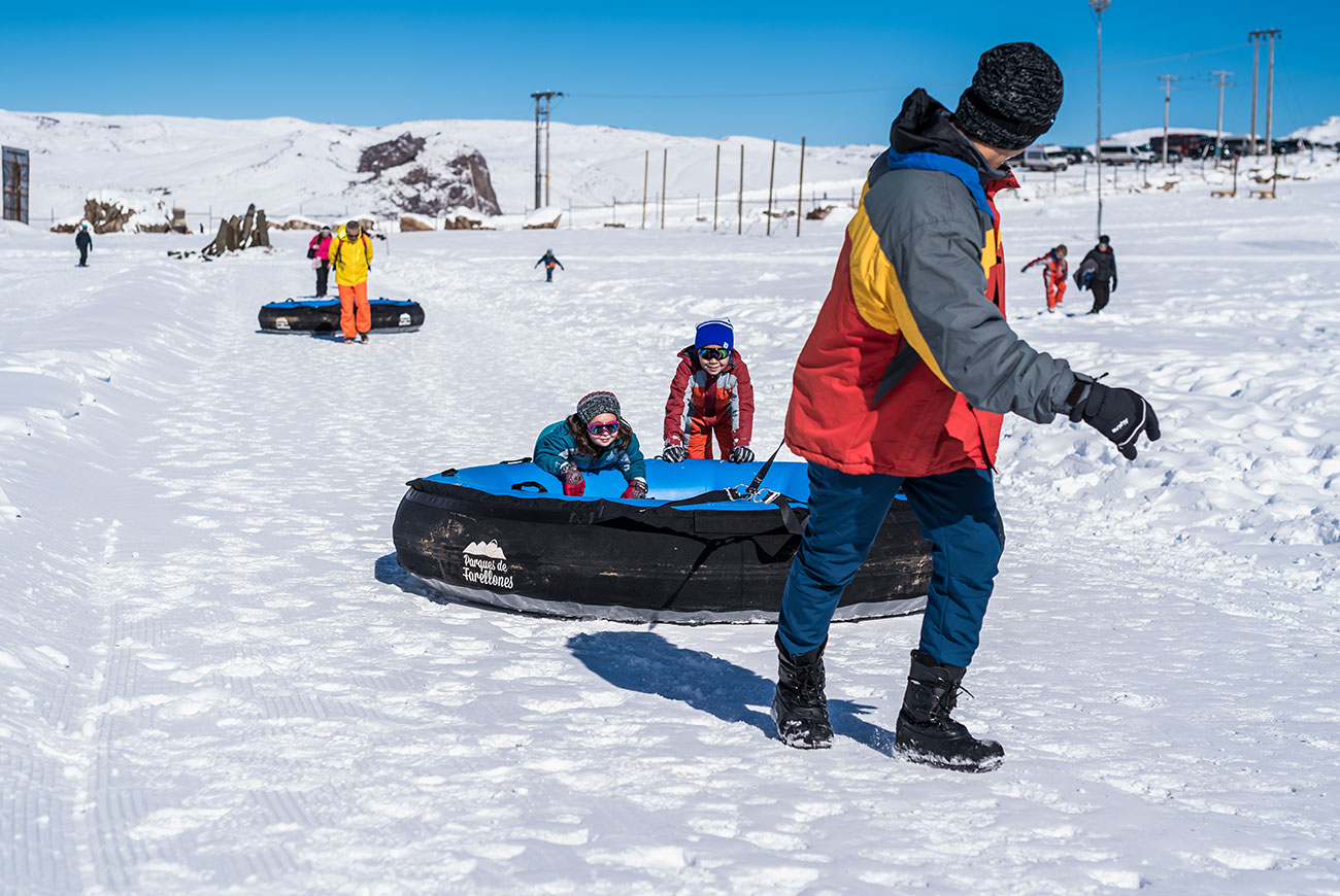 Para os três viverem um dia leve na neve, sugerimos o Parque Farellones: uma experiência de montanha com atividades familiares, paisagens inesquecíveis e deslocamento privativo para manter a rotina da Sofia protegida.